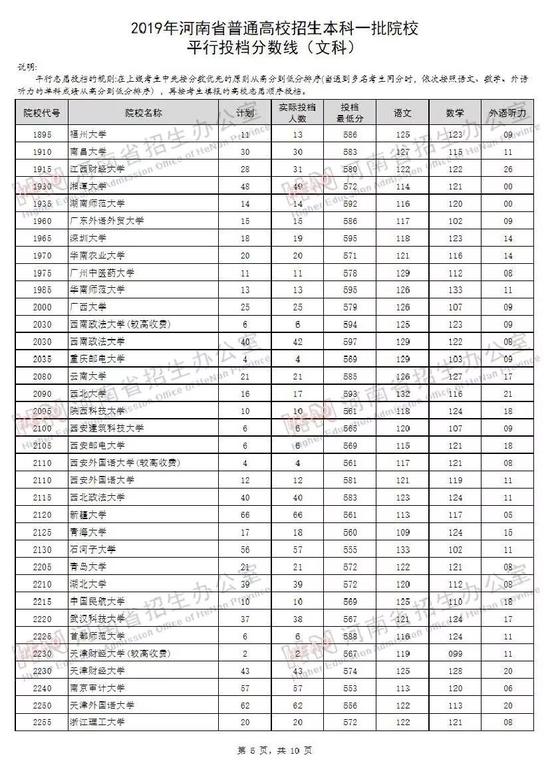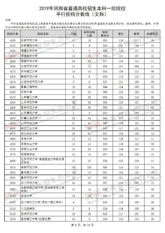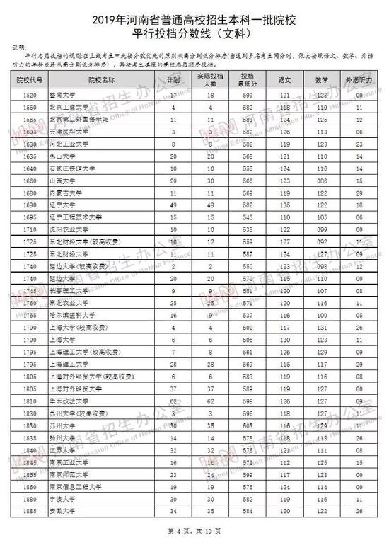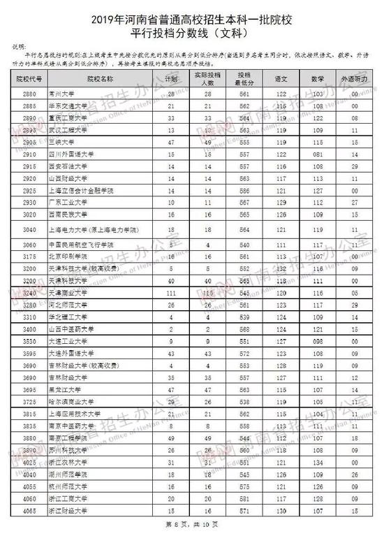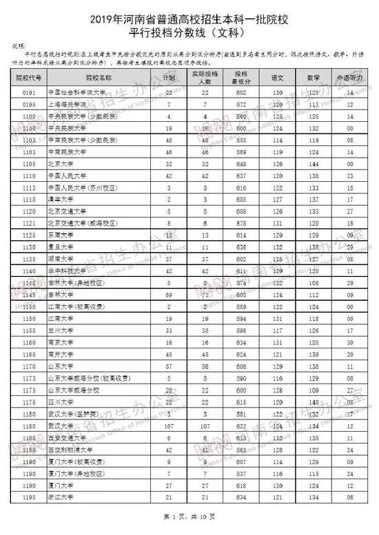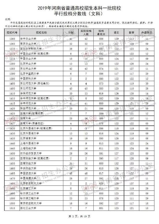 2019年河南省普通高招本科一批院校平行投档分数线已出炉,快看看在豫参加录取的各大高校的投档线是多少!